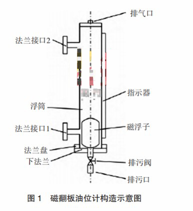 傳感器由干簧管和電阻組成,當(dāng)磁性浮子位置變換后,磁場(chǎng)通過器壁帶動(dòng)傳感器內(nèi)干簧管觸電吸合,干簧管吸合位置決定回路阻抗的大小,一般為10mm 1組,回路電阻大小正好與液位高低成正比,這樣置于傳感器外殼內(nèi)的變送器將電阻信號(hào)轉(zhuǎn)換為標(biāo)準(zhǔn)電流信號(hào),送至監(jiān)控系統(tǒng)。為保證上送信號(hào)的及時(shí)性,根據(jù)需要在雙色磁翻板液位計(jì)管壁上設(shè)置數(shù)個(gè)磁性開關(guān)。當(dāng)磁性浮子上升或下降通過這些磁性開關(guān)所處位置時(shí),將觸發(fā)磁性開關(guān)內(nèi)部觸點(diǎn)動(dòng)作,以開關(guān)量形式將報(bào)警信號(hào)傳輸至監(jiān)控系統(tǒng)。磁翻板油位計(jì)構(gòu)造見圖1。